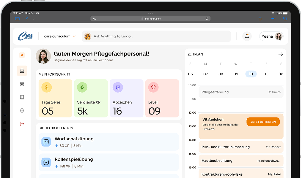We offer innovative live online German courses specially designed for nurses, combining practical language training with real workplace communication in healthcare.